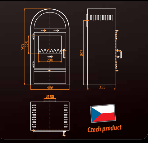 Nominal output: 7 kWBoiler optionOutput to water is 2.5 kWHeating capacity: 120 - 160 cubic metresWeight: 106 kg